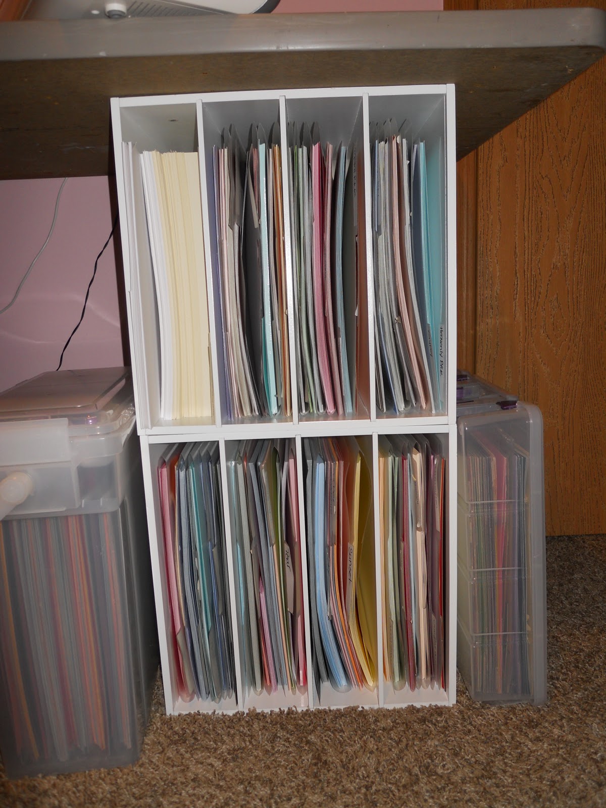 Shelf: B&T Paper from Close To My Heart – Container on Floor: American Crafts cardstock